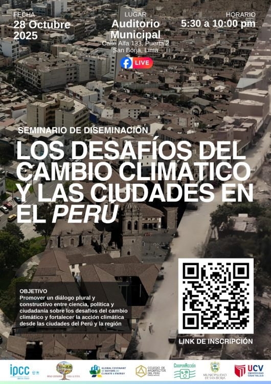 El cambio climático ya no es una amenaza lejana, es una realidad: agrava los problemas urbanos, profundiza la pobreza y deteriora la calidad de vida en las ciudades. Bajo esa premisa se desarrolló ayer, el seminario internacional “Los desafíos del cambio climático y las ciudades en el Perú”, que reunió a científicos expertos en el cambio climático, autoridades locales y ciudadanos comprometidos en un esfuerzo conjunto por repensar el futuro urbano.