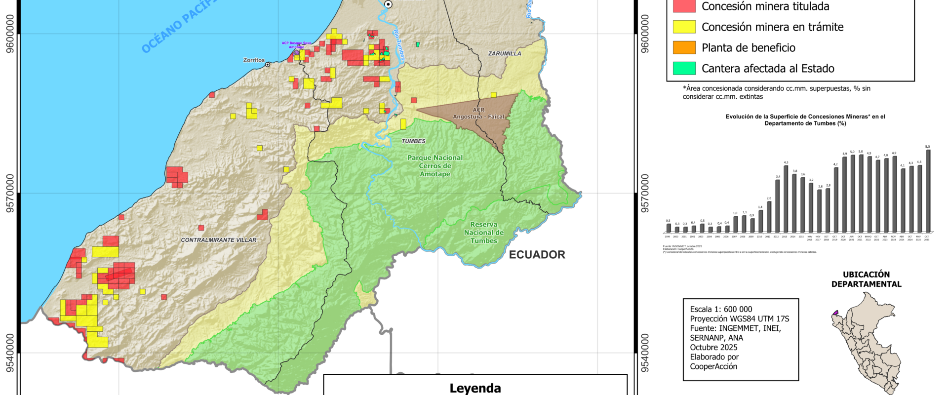 Inicio CooperAcción Informa Tumbes, octubre 2025 12 de marzo de 2026 Mapa de concesiones mineras en el departamento de Tumbes, al mes de octubre del año 2025. Compartir: