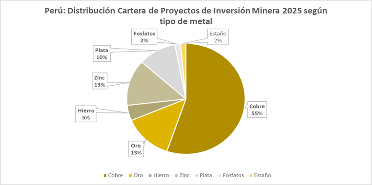 Además, si se revisa la cartera de proyectos de inversión en minería, el 55% son de cobre y solo el 13% de oro (ver gráfico). Más atrás les siguen los otros metales.