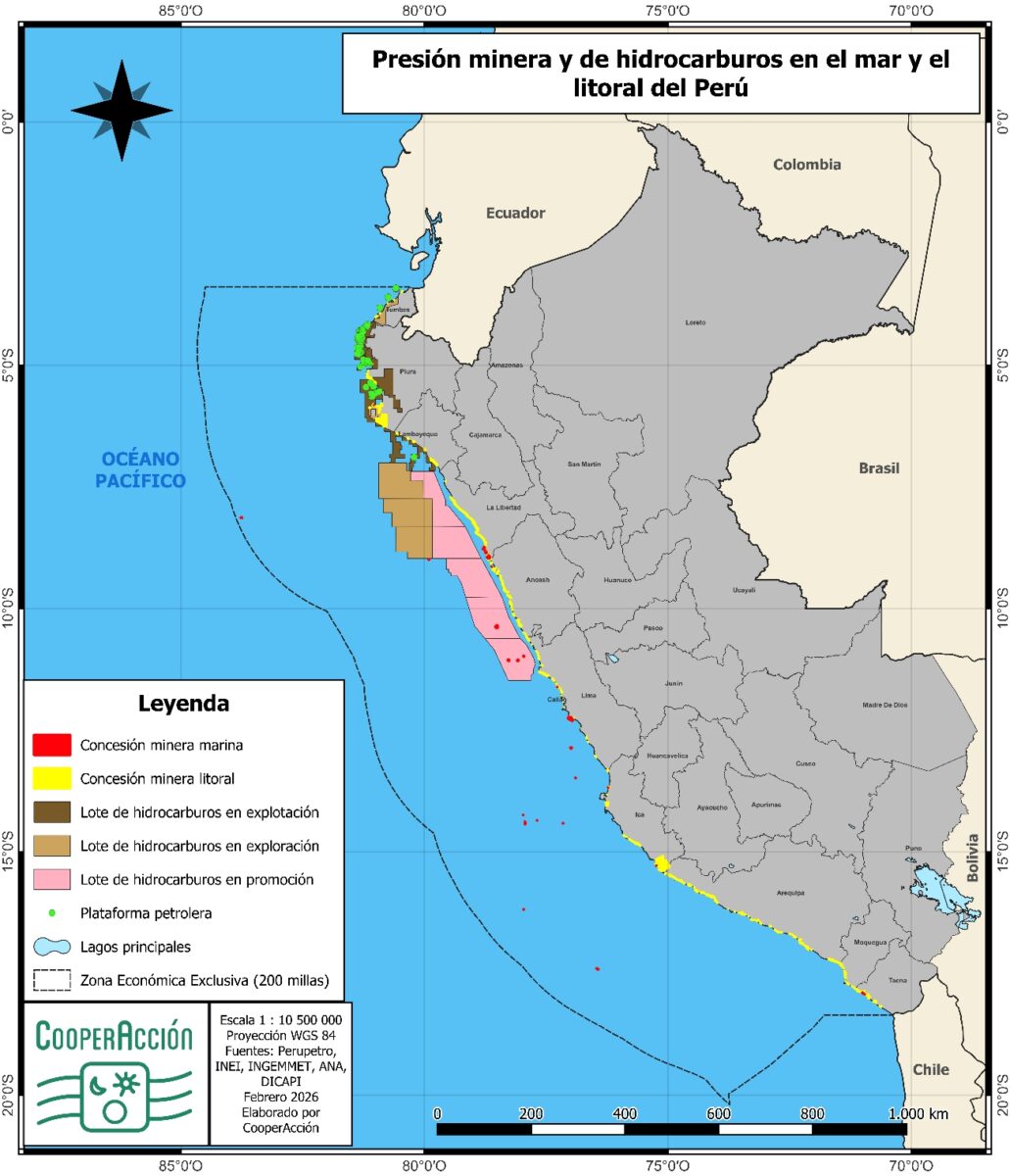 Mapa 1. Presión minera y de hidrocarburos en el mar y el litoral del Perú